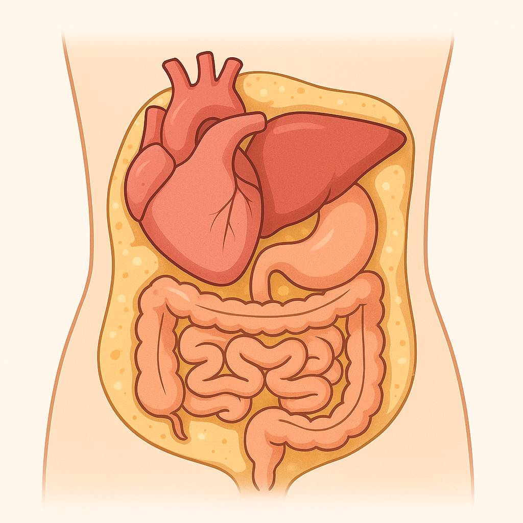 Viszerales Fett — das ist tief liegendes Fett, das dein Herz, deine Nieren, Leber und andere Organe buchstäblich zusammendrückt.